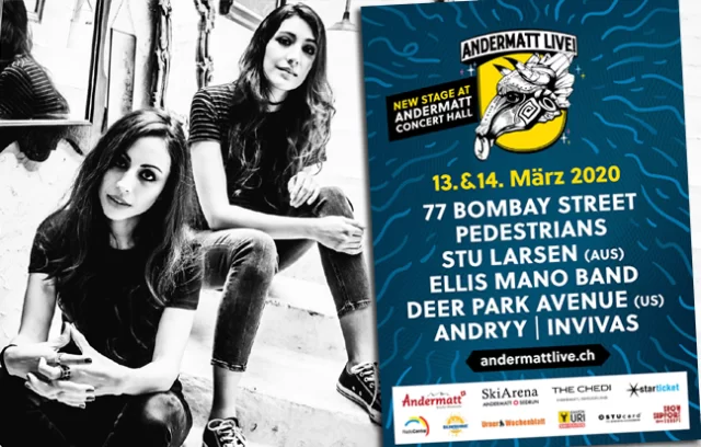 Am Samstag, 14. März 2020 treten DEER PARK AVENUE auf der Main Stage am AndermattLive! auf. Mit dabei sind auch 77 Bombay Street, Pedestrians und viele mehr. Tickets für das Festival und weitere Infos findest Du unter