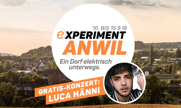 Mitte September lädt die EBL (Genossenschaft Elektra Baselland) Luca Hänni als Show-Act nach Anwil ein. Die EBL und Anwil freuen sich auf eine spannende Woche mit dem «Experiment Anwil - Ein Dorf elektrisch unterwegs» und laden alle Interessierten zu diesem krönenden Abschluss ein.