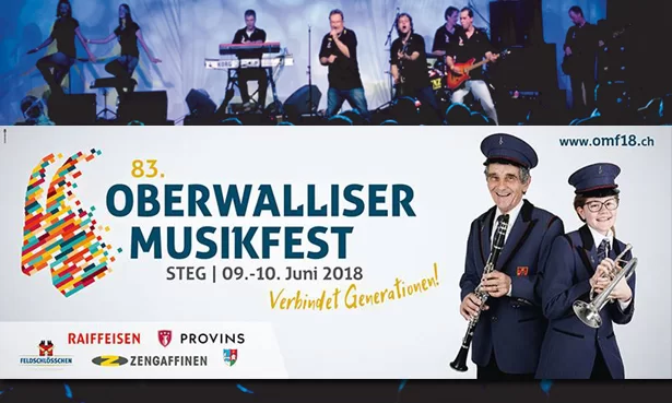 Am Wochenende vom Samstag, 9. und Sonntag, 10. Juni 2018 wird Steg zum Austragungsort des 83. Oberwalliser Musikfestes. Am Samstagabend ab 22.30 Uhr ist im Festzelt Party mit Z’Hansrüedi Endfrenz angesagt!