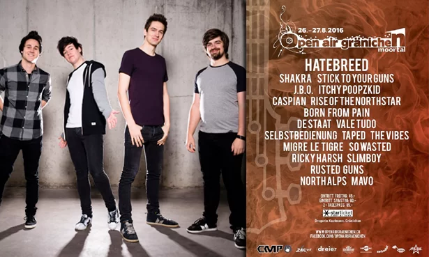 Das 22. Open Air Gränichen findet am 26. und 27. August 2016 statt – und dies mit einem tollen rockigen Programm mit Bands wie Shakra, J.B.O., Itchy Poopzkid, Hatebreed und den Thuner Punkern SO WASTED!