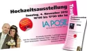 Am Sonntag, den 4. November 2012, wird im Visper „La Poste“ die diesjährige Hochzeitsausstellung präsentiert. Von 10.00 Uhr bis 17.00 Uhr an besagtem Datum stellen verschiedenste Sektoren im Zusammenhang mit dem schönsten Tag des Lebens ihre Dienstleistungen und Produkte in den Vordergrund: Von Brautmode über Blumenwelt, vom Fotografen über den Beauty-Experten, vom Tortenzauberer und dem passenden Reisebüro bis hin zum Uhrenspezialisten. Und als weiterer wichtiger Punkt: Selbstverständlich wird auch Artistpool als professioneller Partner für die musikalische Untermalung von Messen und / oder Hochzeitsfeiern an der Ausstellung mit dabei sein.